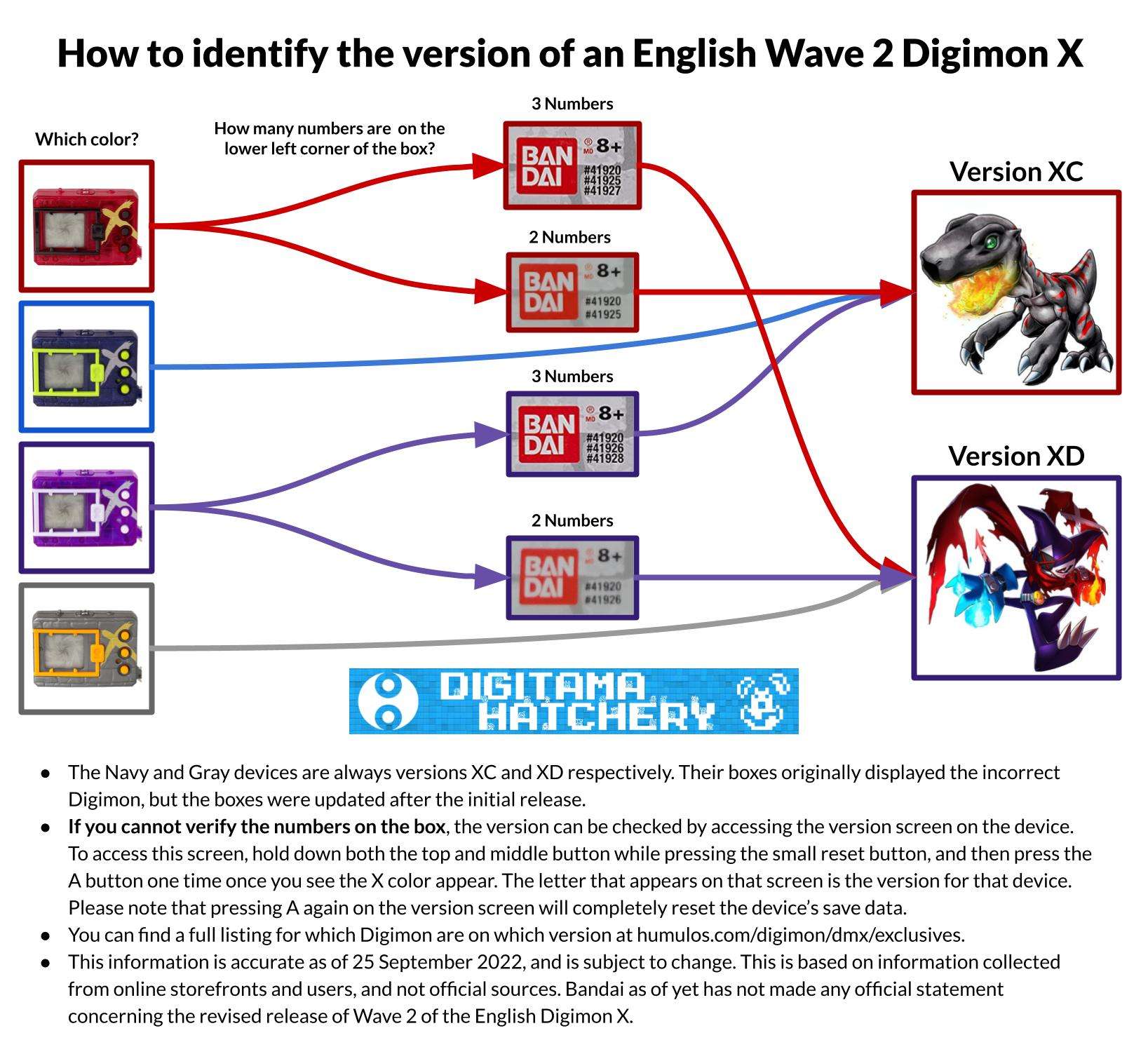 Back when the DMX wave 2 was released, Bandai made a mistake in the programming, reversing the roster of the devices. You can find here an image showing how to detect these issues.